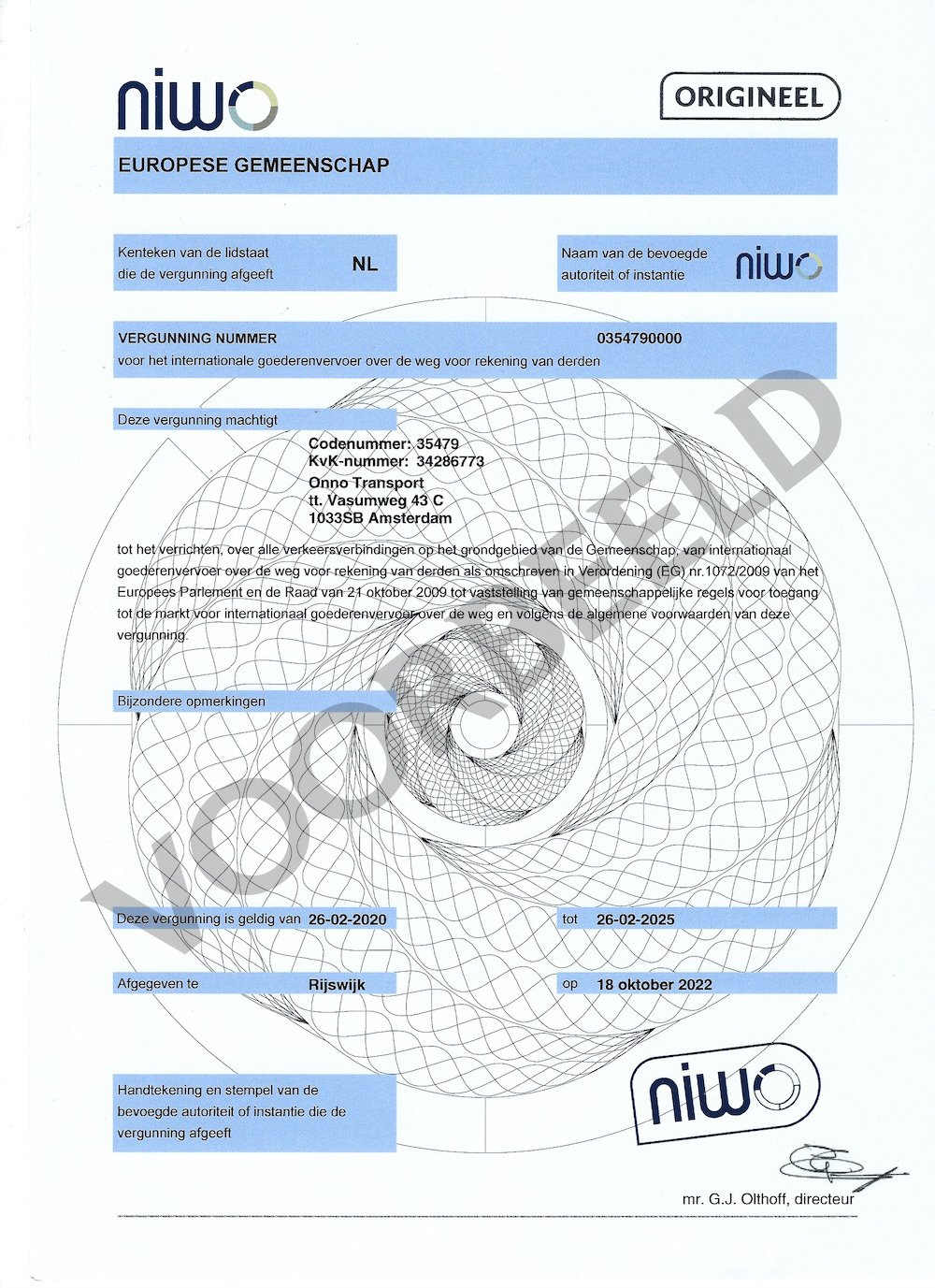 Het certificaat van ons bedrijf is geldig tot 2025 en staat op naam van het bedrijf zelf.